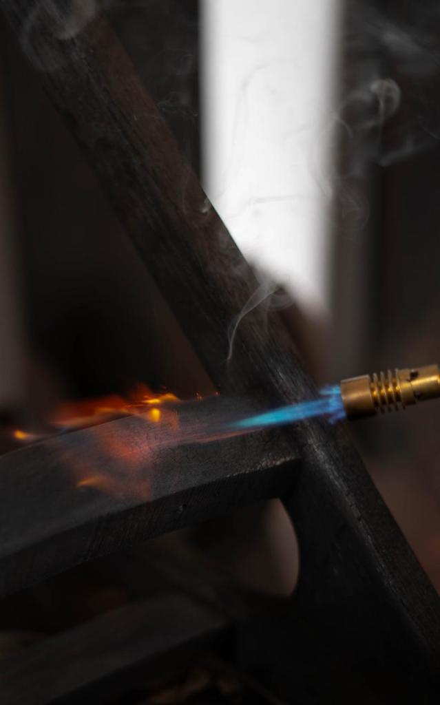 Reforzando su compromiso con la creación de piezas que conjugan diseño atemporal, técnicas tradicionales y sensibilidad contemporánea, Dórica incorpora la técnica japonesa Yakisugi como un acabado exclusivo disponible bajo pedido, ampliando así su repertorio material y estético. Originaria de Japón, esta técnica consiste en carbonizar intencionalmente la superficie de la madera para volverla más resistente a la humedad, al desgaste del tiempo y a los elementos naturales. El proceso implica quemar, enfriar, limpiar y sellar la madera, revelando una textura rica en matices y un acabado negro profundo que evoca fuerza y sobriedad.